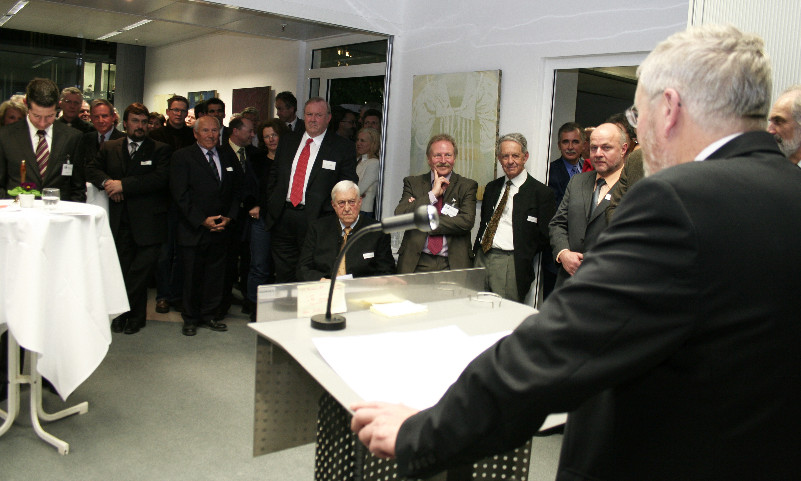 Präsident Dr.-Ing. Heinrich Schroeter, Künstlerin Gisela heide und Klaus von Gaffron, der in die sehenswerten Werke einführte. |