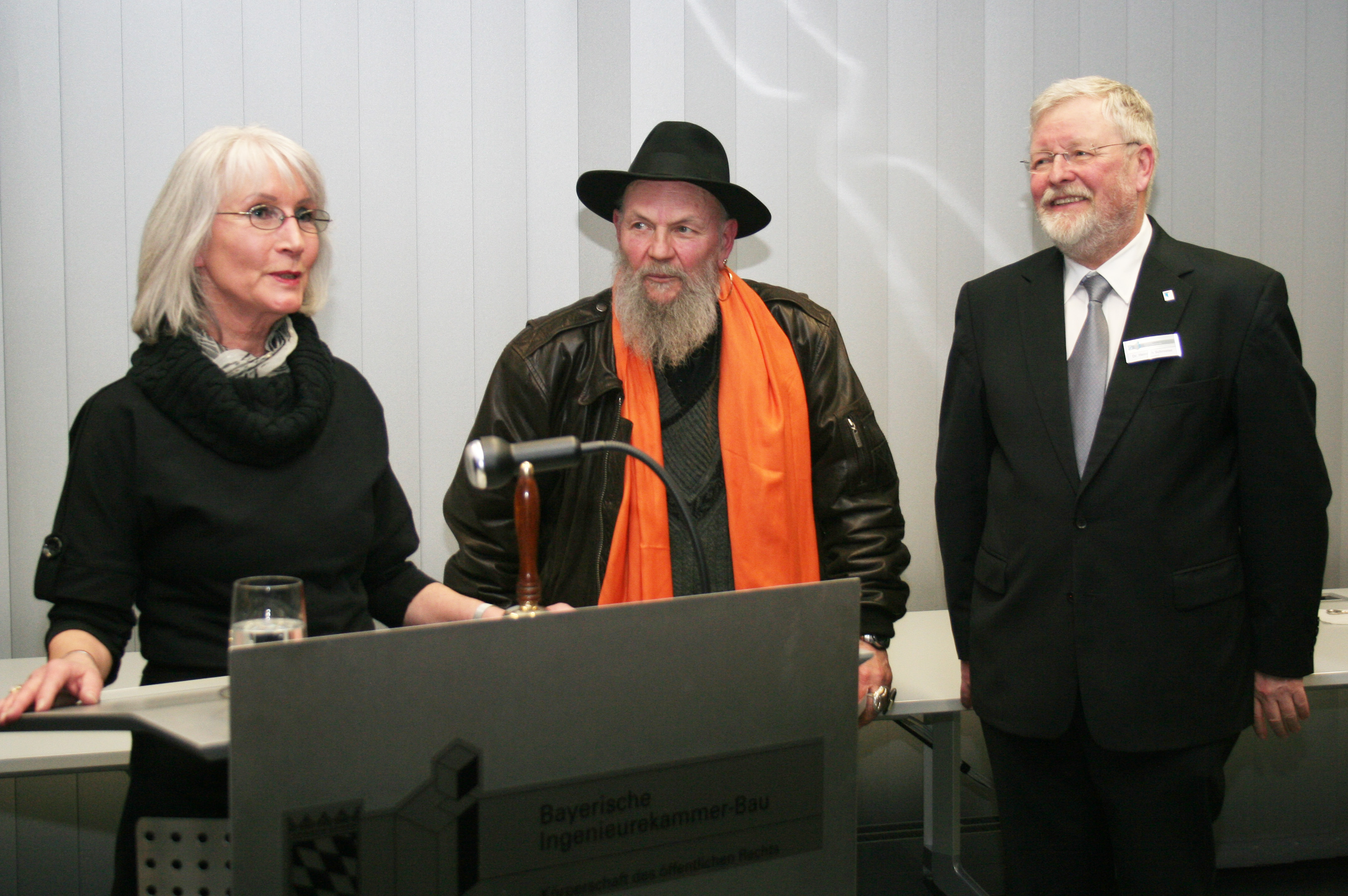 Die Künstlerin Sybille Hochreiter, Klaus von Gaffron (Vorsitzender des Berufsverbands Bildender Künstler in Bayern und Kammerpräsident Dr.-Ing. Heinrich Schroeter (von links). ► Download [jpg, 1,41 MB] |
