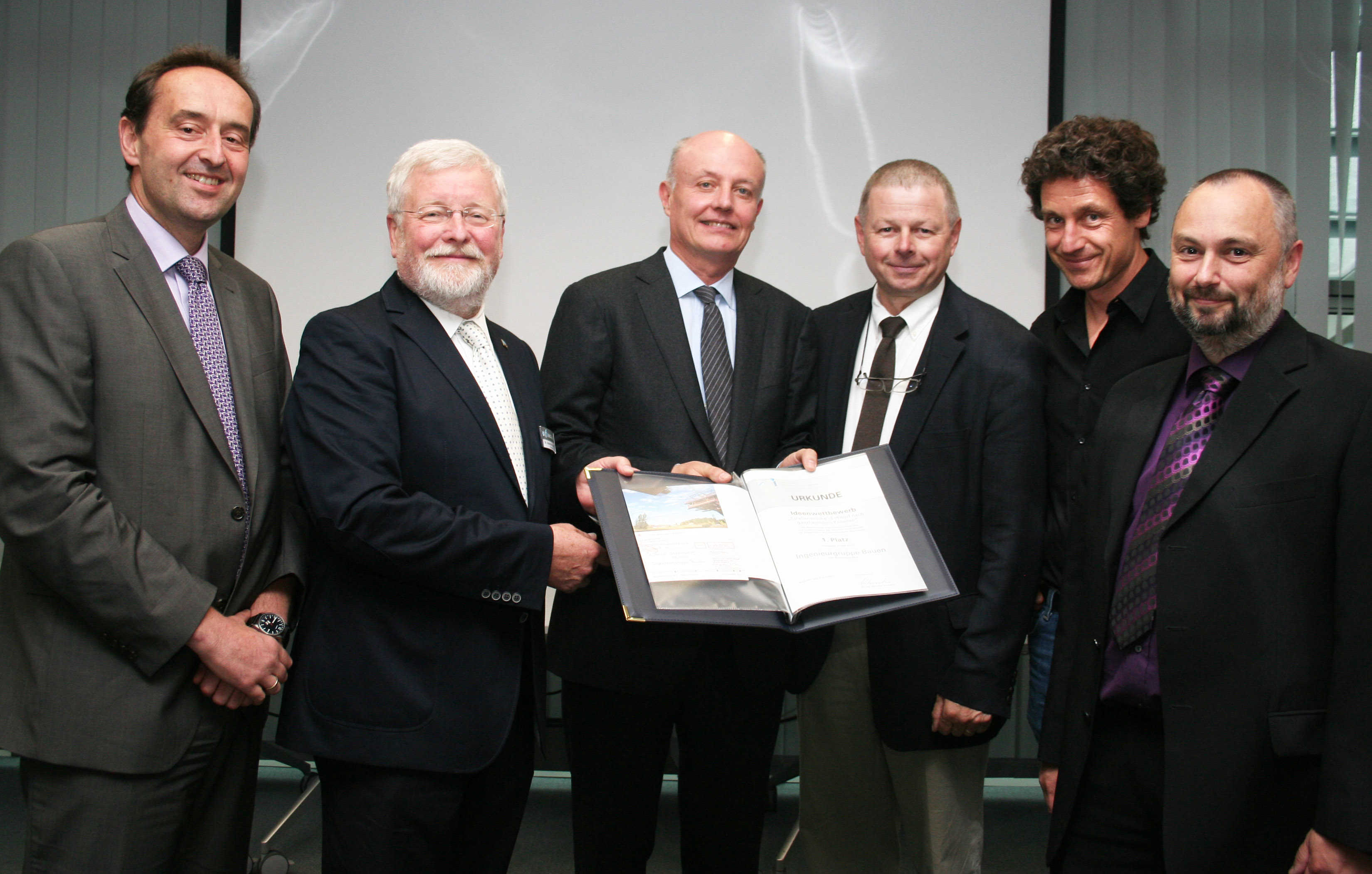 Von links: Prof. Dr.-Ing. Oliver Fischer, Dr.-Ing. Heinrich Schroeter, Ministerialdirektor Michael Höhenberger, Dipl.-Ing. Josef Seiler, Hans Jakel und Dr.-Ing. Alfred Krill. ► Download [jpg, 910 KB] |